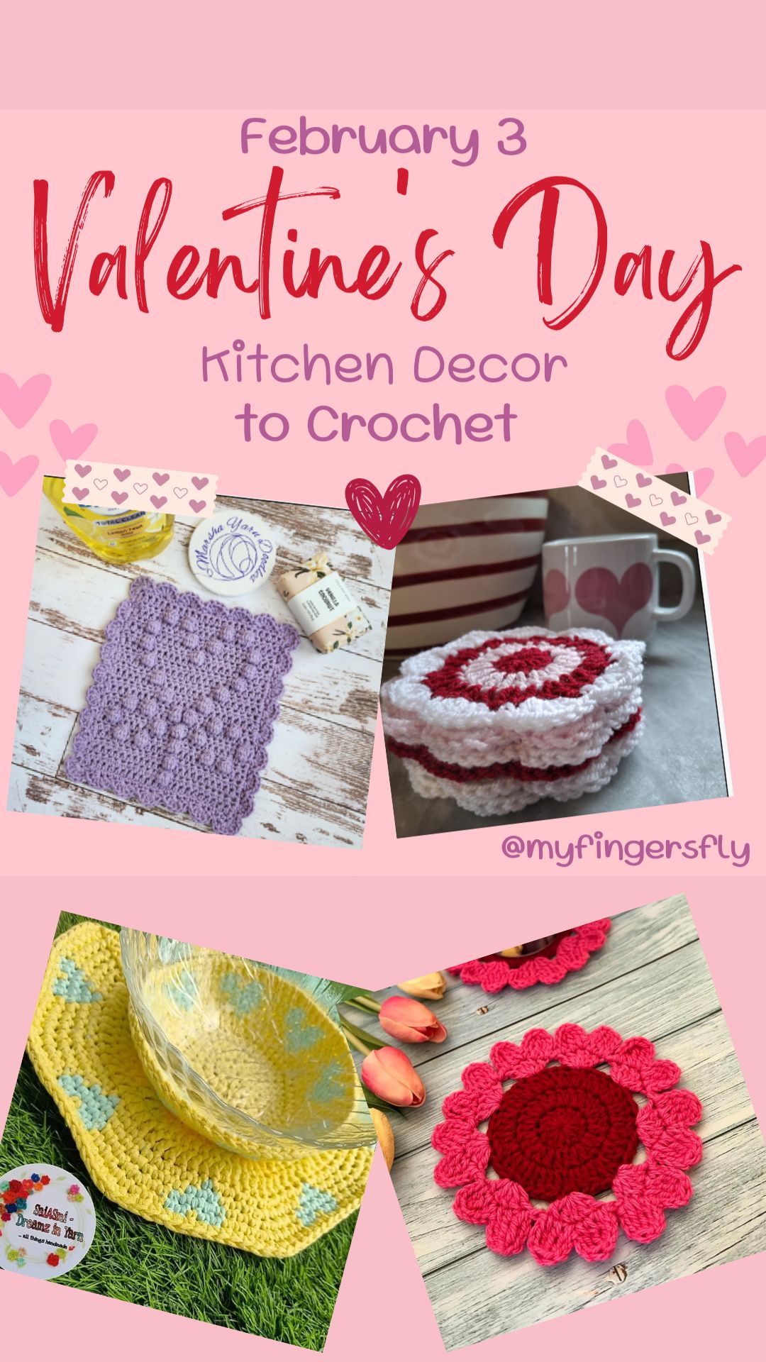 February 3 – Valentine’s Day crochet patterns for the kitchen